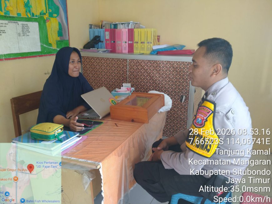 Dalam kegiatan tersebut, Bhabinkamtibmas bertemu langsung dengan Bidan Pustu Tanjung Kamal, Jihan Fajriah, S.Keb., guna melakukan koordinasi dan monitoring terkait situasi kamtibmas serta kendala yang dihadapi dalam pelaksanaan Posyandu dan program imunisasi di desa setempat.