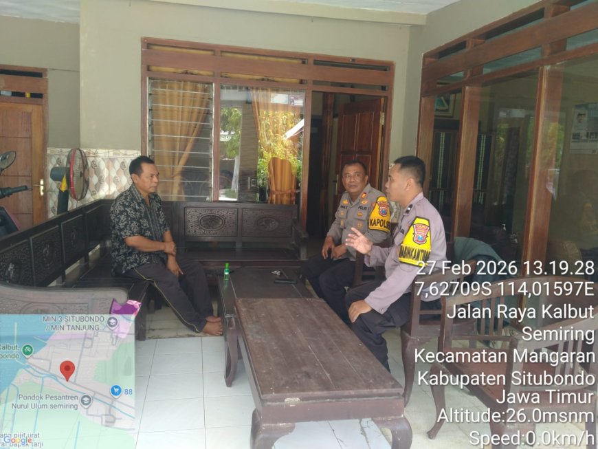 Kegiatan dipimpin langsung oleh Kapolsek Mangaran AKP Iwan Sumantri, SH bersama Bhabinkamtibmas. Dalam giat tersebut, personel melaksanakan sambang ke kediaman Kepala Desa Semiring, Matharis Subianto, yang berlokasi di Dusun Semiring Barat RT 01 RW 17.