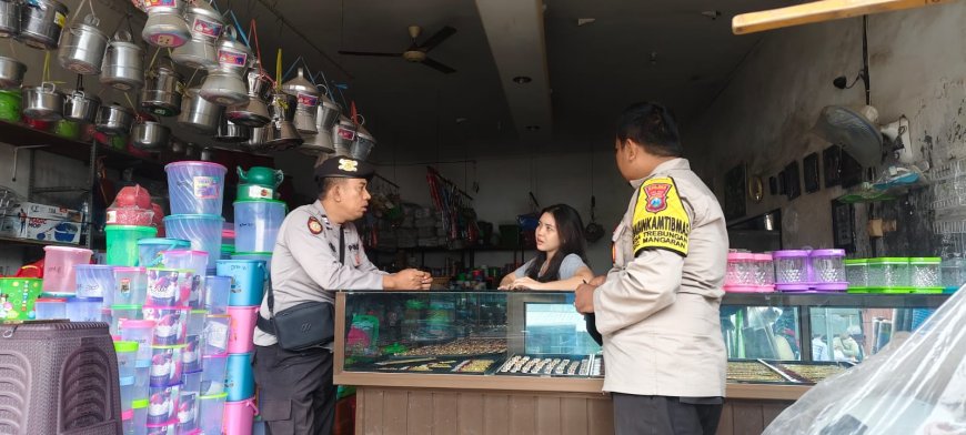 Kegiatan patroli ini dilaksanakan oleh Kanit Sabhara Aiptu Taufik Zamzami bersama Bhabinkamtibmas Bripka Irawan dengan sasaran pemilik dan karyawan toko emas di kawasan Pasar Mangaran.