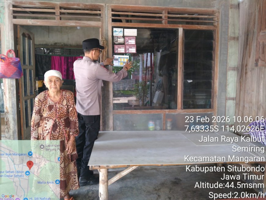 Dalam rangka mendukung program pemerintah terkait pengentasan kemiskinan, jajaran Polsek Mangaran kembali melaksanakan kegiatan Door to Door System (DDS) di wilayah Desa Tanjung Kamal, Kecamatan Mangaran, Kabupaten Situbondo, Senin (23/2/2026).