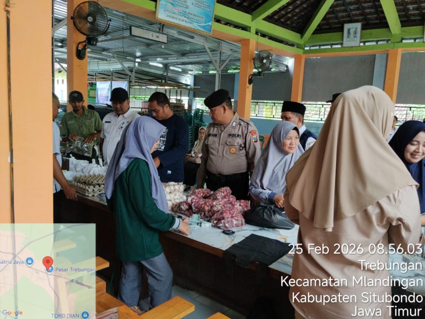 Situbondo – Dalam rangka mendukung program pemerintah menjaga stabilitas harga dan ketersediaan bahan pokok, Polsek Mlandingan melaksanakan monitoring serta pengamanan kegiatan Operasi Pasar Murah Tahun 2026 yang digelar di Balai Desa Trebungan, Kecamatan Mlandingan, Kabupaten Situbondo, Rabu (25/02/2026).